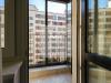 На лоджии выполнено панорамное остекление, что позволяет пропускать много естественного света в квартиру. Теплые полы с плиткой на балконе — это отличное решение для создания комфортного и уютного пространства.