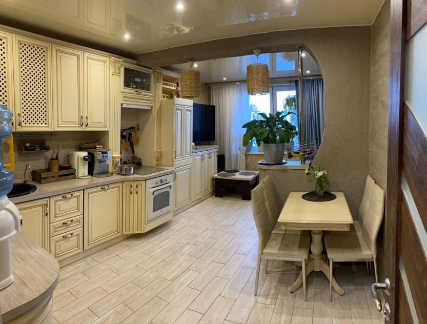В квартире выполнен качественный дизайнерский ремонт, электрика и сантехника полностью обновлены, выполнена экологичная шумоизоляция. Большая застекленная лоджия с трехкамерными стеклопакетами, паркетная доска, натяжные потолки.