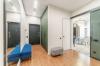 Благодаря панорамным окнам и высоким потолкам 3 м в квартире много воздуха и света.