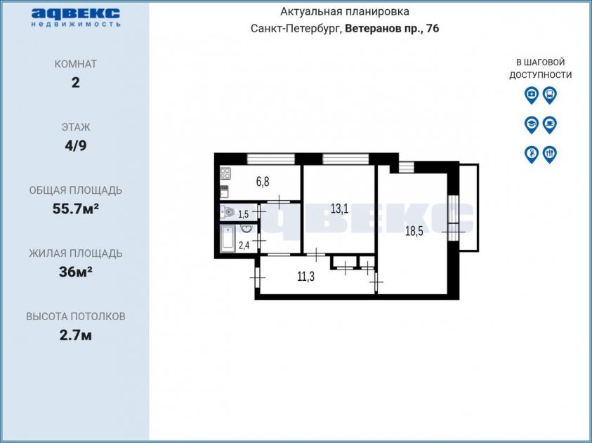 В продаже угловая квартира на пр.Ветеранов, с видом на Александровский парк.