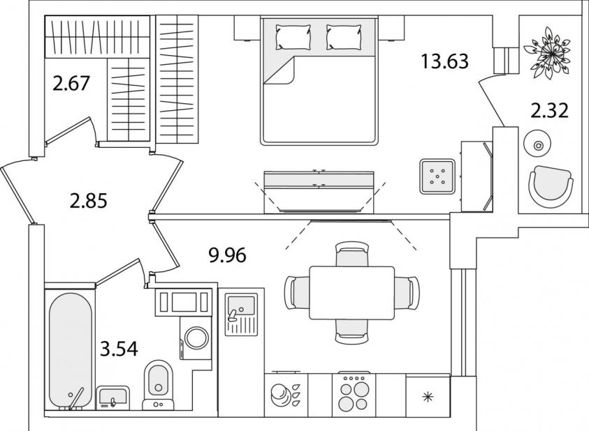 1-комнатная квартира33.8 кв.м.