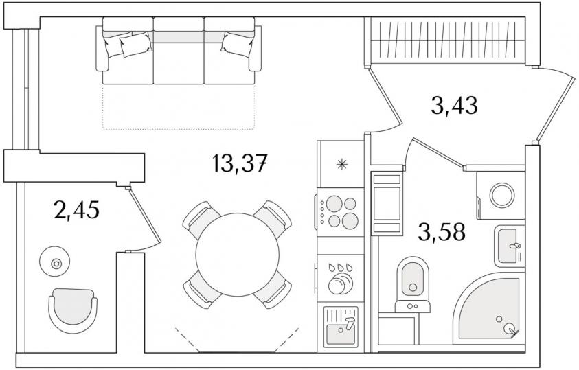 Студия21.6 кв.м.