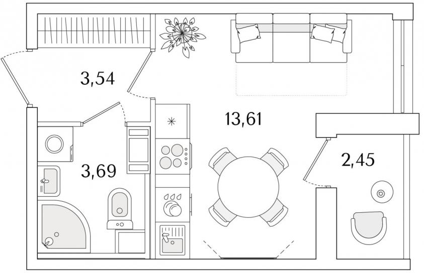 Студия22.1 кв.м.