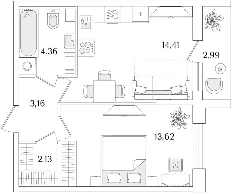 Эта уютная светлая квартира вблизи станции метро Проспект Ветеранов будет сдаваться с черновой отделкой. Общий метраж квартиры составляет 39.2 метра, метраж кухни 14.4м. В квартире будет совмещенный санузел и просторная прихожая. ЖК Кинопарк от застройщика РСТИ будет сдан в II кв. 2028.