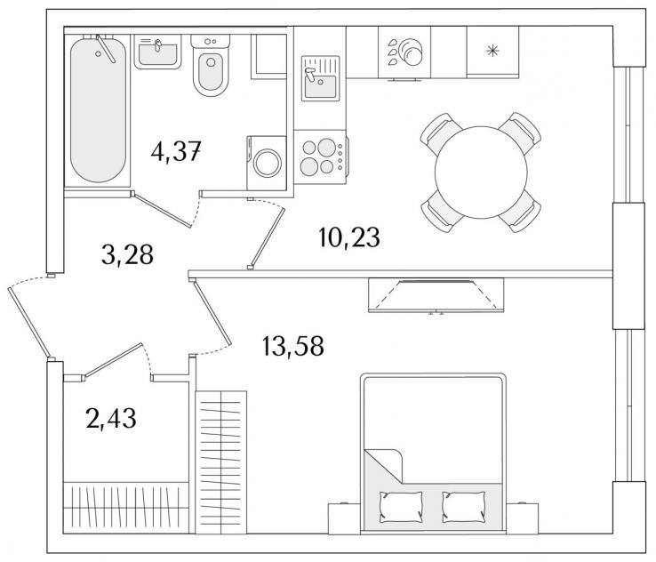 Вашему вниманию предлагается комфортная однокомнатная квартира общей площадью 33.9м, находящаяся на 1 этаже, что удобно как для семей с маленькими детьми и более старшему поколению. В квартире будет выполнена черновая отделка.