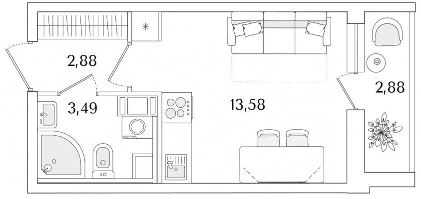 Эта уютная светлая квартира вблизи станции метро Проспект Ветеранов будет сдаваться с черновой отделкой. Общий метраж квартиры составляет 21.4 метра, метраж кухни не указан. В квартире будет совмещенный санузел и просторная прихожая. ЖК Кинопарк от застройщика РСТИ будет сдан в II кв. 2028.