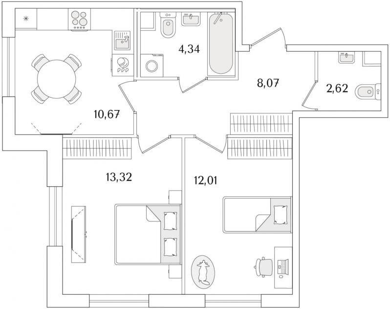 Вашему вниманию предлагается комфортная двухкомнатная квартира общей площадью 51м, находящаяся на 1 этаже, что удобно как для семей с маленькими детьми и более старшему поколению. В квартире будет выполнена черновая отделка.