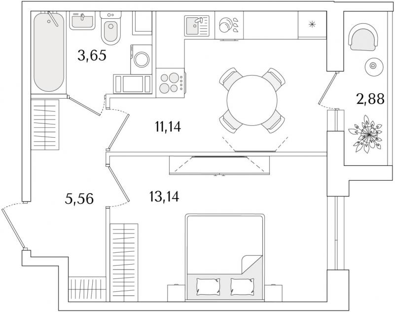 1-комнатная квартира34.9 кв.м.