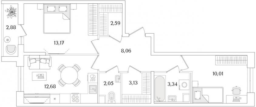 Продается двухкомнатная квартира с кухней 12.7м, которая подойдет именно Вам! Дом, в котором она расположена - кирпично-монолитный, сдается II кв. 2028. Квартира расположена в ЖК Кинопарк по адресу Санкт-Петербург, Тамбасова ул.. Максимально быстро можно добраться от станций метро Проспект Ветеранов или Ленинский проспект.