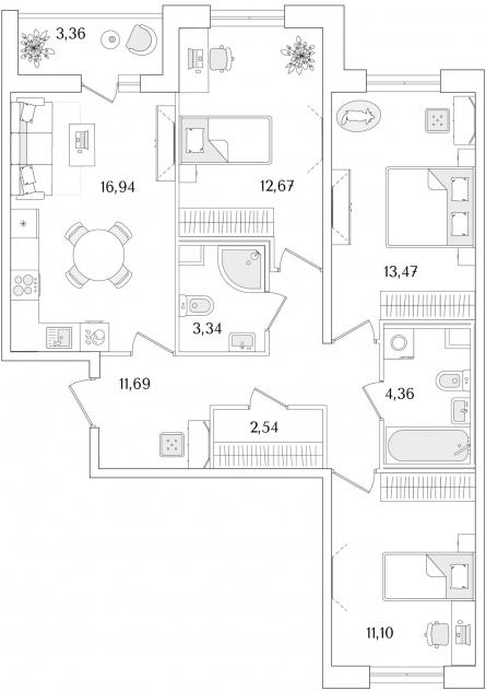 Продается трехкомнатная квартира с кухней 16.9м, которая подойдет именно Вам! Дом, в котором она расположена - кирпично-монолитный, сдается II кв. 2028. Квартира расположена в ЖК Кинопарк по адресу Санкт-Петербург, Тамбасова ул.. Максимально быстро можно добраться от станций метро Проспект Ветеранов или Ленинский проспект.