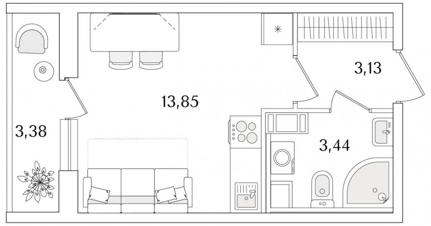 Студия22.1 кв.м.
