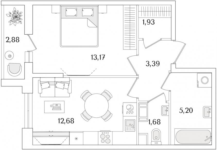 12.68 кв.м.