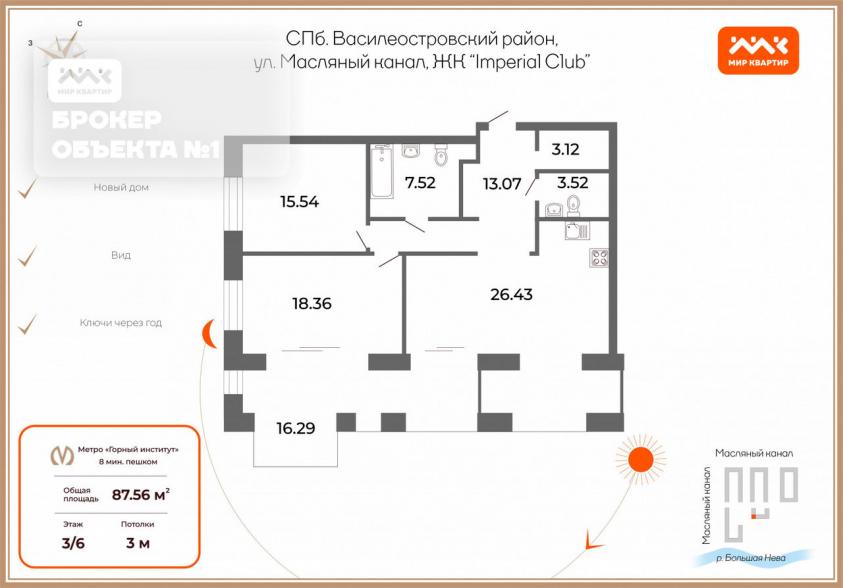 Арт. 126469851 В продаже видовая евро3 квартира в топовом проекте от Сетла - Imperial Club.