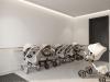 Внутренний двор утопает в зелени, есть зона отдыха с деревянными шезлонгами, место для встреч в тени деревьев, в зоне отдыха установлены уличные обогреватели и дополнительные розетки.