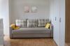 В комнате остается мебель и кухня, карнизы, светильники.