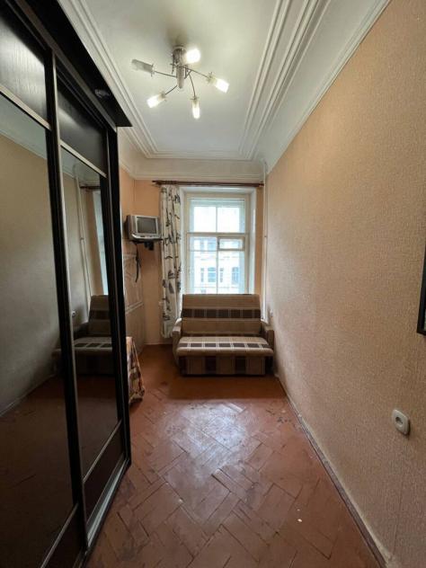 Комната правильной прямоугольной формы, с высокими потолками, оборудована необходимой мебелью (раскладной диван, большой шкаф, столик, телевизор). Состояние хорошее, не требует особых вложений или ремонта. Можно сразу заехать и жить, а можно сдавать. Если рассматриваете как инвестицию, примите во внимание наличие вокруг нескольких ВУЗов - арендаторы будут всегда. Соседи почти все семейные, места общего пользования в приличном состоянии.