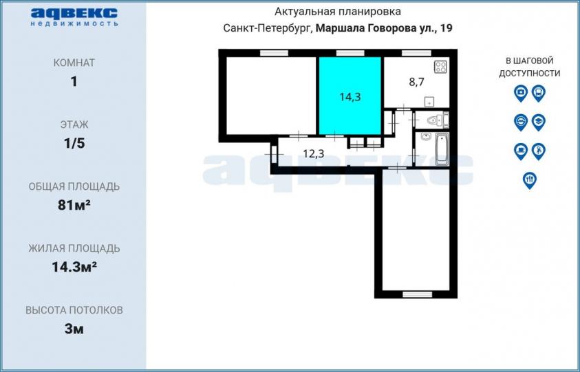 Продаётся комната 14,3 кв.м в 3х комнатной квартире,в пешей доступности от метро Кировский завод. Перспективная квартира,так как продаётя ещё одна комната 20 кв.м и в последующем возможен выкуп третьей комнаты. Один взрослый собственник, мат капитал не использовался,долгов и обременения нет.Прямая продажа.