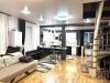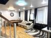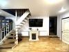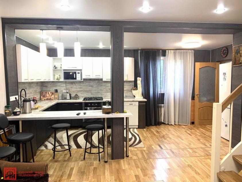 На первом этаже находятся просторная прихожая, три комнаты, кухня с гостевым залом площадью 28 кв. м, совмещённый санузел . Есть ещё одна комната 43 кв. м без косметической отделки. На мансарде расположены жилая комната и гардеробная, которую можно переоборудовать во второй санузел. Также можно организовать ещё одну комнату.