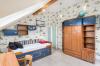 Отдельный дом с функциональной планировкой: спальня, кухня, просторная гостиная с мягкой мебелью.
