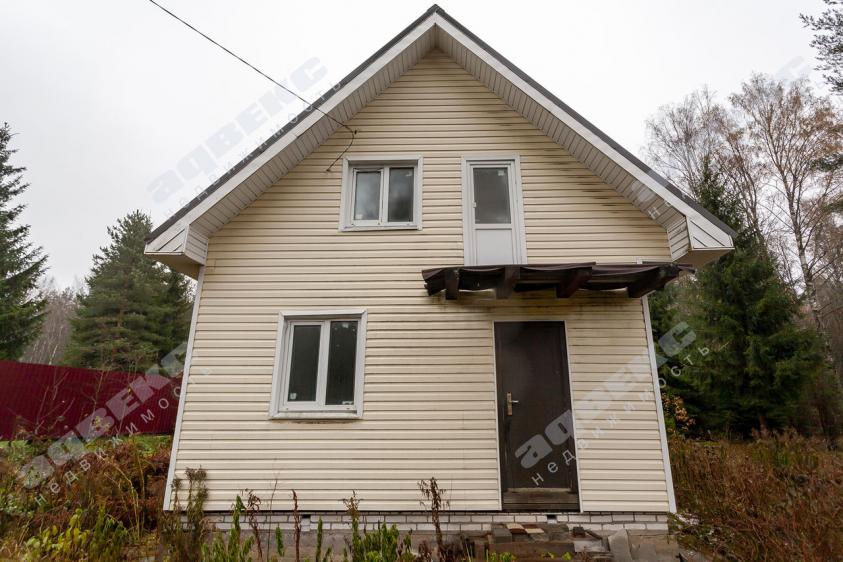 Дом двухэтажный, из бруса, обшит сайдингом, без внутренней отделки. Фундамент свайный (ж/б с лентой обвязкой). Крыша - металлочерепица. Вокруг дома есть возможность сделать летнюю веранду.
