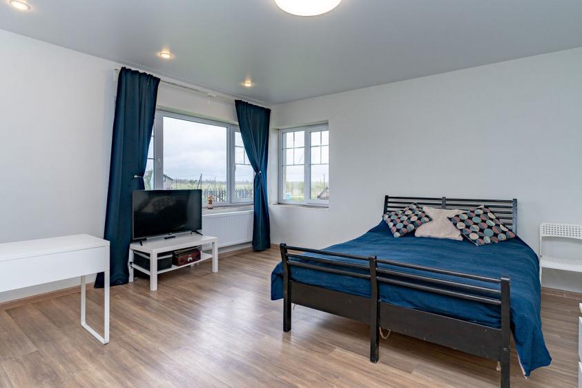 Подается 2х этажный дом площадью 267 кв.м на плитном фундаменте с ростверком высотой 400 мм. Дом сделан из арболита (материал является хорошим теплоизолятором и обладает высокой прочностью). Кровля - металлочерепица Grand Line, свесы подшиты планкеном, установлена водосточная система. Высота потолков 2,8 м – 3 м, стропильная система крыши опирается на кирпичные столбики и двутавровые балки. В доме три отдельных входа для удобства проживания большой и дружной семьи.