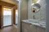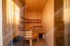 Первый этаж состоит из передней террасы, большой прихожей с котельной, просторного единого пространства, включающего в себя гостиную и кухню с эркером, а также санузла с сауной. Из кухни и зоны сауны есть выходы на широкую заднюю террасу.