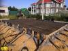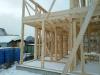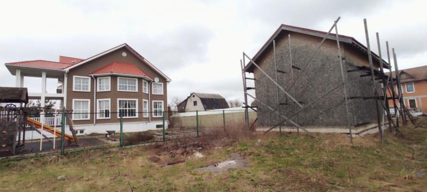Дом двухэтажный (первый этаж и мансарда), построен из дерева (деревянный каркас), обработан от грибков и плесени антисептиком, стены закрыты плитами ОSB. Крыша металло-черепица, стоит на монолитной железо-бетонной плите (толщиной 300 мм), под плитой основание засыпано песком и щебнем (толщиной 300 мм). Водоснабжение и водоотведение заложено проектом. Рядом с домом есть яма под установку септика. Перед домом площадка для нескольких автомашин.