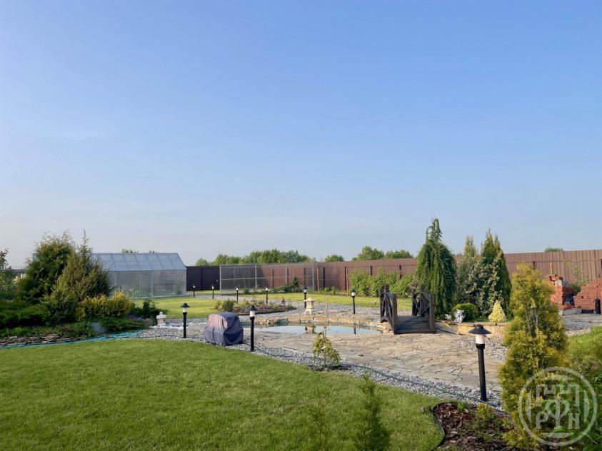 На участке всё продумано до мелочей: хозяйственный блок с рабочей зоной и системой хранения, место для бани и зона барбекю. Газон занимает всю площадь, создавая ощущение простора и свободы. Дорожки и зона парковки вымощены брусчаткой и камнем. По периметру дорожки облицованы каспийской галькой, что придаёт участку ухоженный и элегантный вид.