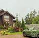 В доме три спальни, просторная кухня-гостиная и два санузла. Участок благоустроен: газон, дренажная система, дорожки и парковка для автомобиля. На территории растут плодовые деревья и кустарники, а также декоративные растения: туи, гортензии и цветы.