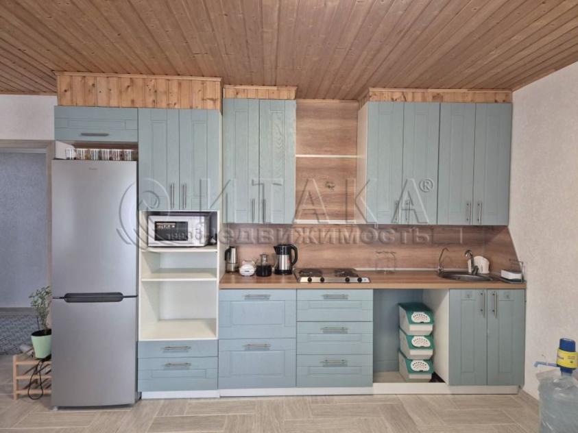 На первом этаже: просторная кухня -гостинная -40 кв.м. ,с мебелью ,спальня -10 кв.м ,с/у -10 кв.м,бойлерная ,холл-12 кв.м, теплые полы по всему периметру первого этажа. Из кухни есть выход в зону отдыха -на застекленную веранду (закрытого типа ) с выходом в сад .