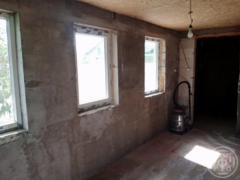 Дом из газобетона на монолитной плите на высоком и сухом участке. Выполнена предчистовая отделка и у вас есть возможность воплотить свои дизайнерские идеи в жизнь. На 1 эт. смонтирован теплый пол, осталось установить котёл и выбрать половое покрытие. Везде стеклопакеты. Деревянная лестница на 2 эт. Покрытие крыши- ондулин. Из дома выход на террасу.