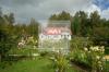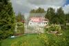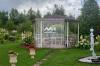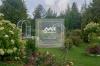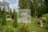 Участок с ландшафтным дизайном, ухоженными клумбами и беседками.