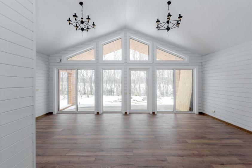 О ДОМЕ: Светлый новый дом со свежим ремонтом. Высота потолка от 2.7м. до 4.7м. в коньке. Стены- крашенная имитация бруса, потолки- натяжные по скатам кровли, уложен ламинат и плитка, тёплые водяные полы. В доме 2 спальни, кухня гостиная с окнами в пол, терраса 14 м. и совмещенный санузел. До продается укомплектованным: кухня с мойкой, варочная панель, холодильник, стиральная машина, душевая кабина, унитаз, раковина в с/у, бойлер, люстры и светильники.