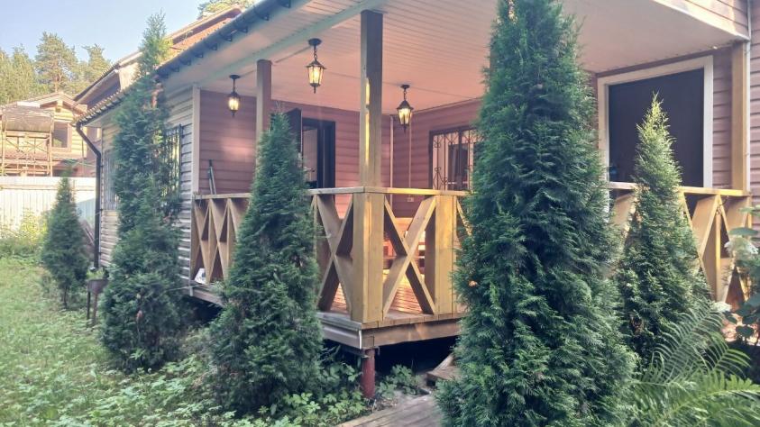 В доме кухня-столовая, спальня, зона отдыха, ванна с душевой кабиной, туалет, сауна. Открытая веранда для круглогодичного отдыха. Кухня полностью оборудована кухонной мебелью и техникой. Окна-стеклопакеты с решетками. Отопление -электрические конвекторы, теплые полы, все в доме сделано для комфортной жизни.