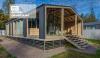 Панорамные окна с двухкамерными стеклопакетами и москитными сетками наполняют дом светом и открывают вид на зелень и воду.