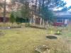 На участке растут плодовые кусты и сосновые деревья.