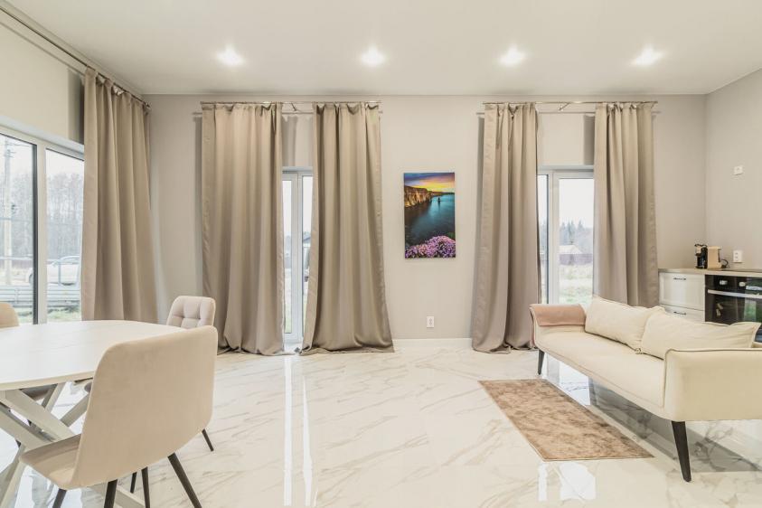 · Отопление: Эффективная система с электрокотлом и теплыми полами по всему дому.