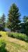 Участок огорожен забором, имеет широкий въезд, украшенный елями, места для парковки автомобилей.