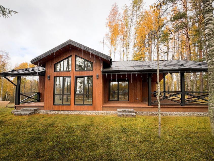 Дом Wi-KiNG 116 кв.м. в сосновом лесу. Выгодное предложение! Готовность 100%, включая коммуникации. Все готово к проживанию. От СПб – 35 мин. Возможна Ипотека и применение Мат. капитала. Дом Wi-KiNG построен по скандинавской технологии из сухого строганого бруса. Фундамент - железобетонный. Каркас полностью антисептирован. Установлены энергоэффективные панорамные окна. Теплые полы во всех помещениях. Дом Wi-KiNG находится в заселенном коттеджном поселке Белкино: