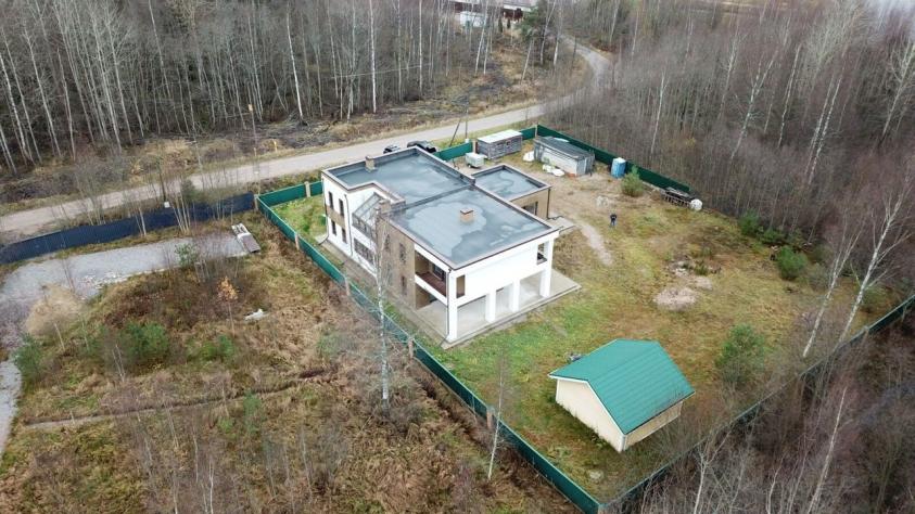 Дом кирпично-монолитный, стоит на монолитной плите, сделана наружная отделка всего дома, полное остекление, сделана отмостка. Внутри дома выполнена черновая отделка, стены—перегородки кирпичные оштукатурены. На первом этаже разведены тёплые полы и подведены трубы для радиаторов, залита стяжка по всему этажу.