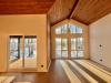 Просторная кухня-гостиная с панорамными окнами и мансардными потолками;