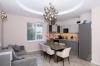 Дом: 2 этажа, большая кухня, гостиная, 1 комната на первом этаже и 3 на втором. Комнаты с гардеробными. Два сан.узла, постирочная, есть помещение для сауны или можно оборудовать мастер-спальню с гардеробной и своим просторным сан.узлом. Закрытые большие террасы, где можно организовать зимний сад, зал для занятий спортом или йогой и т.п.