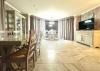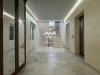 Первый этаж: большая прихожая, санузел, кухня-столовая 43 кв.м и потрясающая гостиная - 64 кв.м. зонированная на 2 части (зона для релакса в удобном кресле у камина и медиа зона с большим ТВ и домашним кинотеатром DENON со встроенной потолочной акустикой). Панорамное остекление даёт много света и делает помещения ещё более просторными. Дорогая итальянская мебель и полы из итальянского мрамора.