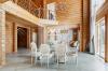 Двухэтажный дом возведен в 2009 году из финского клееного бруса. Архитектура и интерьер продуманы до мелочей: натуральное дерево, керамика, панорамное остекление, «второй свет» создают ощущение объема и тепла. Сердце дома — величественная гостиная со стеклянным камином-пирамидой — воплощение мечты об уютных семейных вечерах.