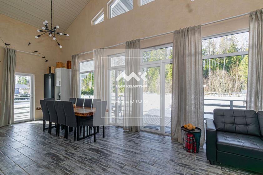 На двух этажах расположены 4 уютные комнаты, мебелированные всем необходимым, а также просторная кухня-гостиная с панорамными окнами и видом на лес, где вы сможете проводить время с семьей и друзьями. Внутренний ремонт выполнен с любовью и вниманием к деталям, создавая атмосферу уюта и тепла. Вся обстановка, мебель, элементы декора и техника остаются новому владельцу, что позволяет сразу после покупки заехать и жить. Никаких новых вложений дом не требует.