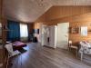 Каркасный дом для круглогодичного проживания включает в себя уютную террасу, прихожую, светлую и просторную кухню-гостиную (27 м2), две комнаты (по 12 м2) с встроенными шкафами, санузел с душевой кабиной и небольшой сауной, а также помещение котельной.