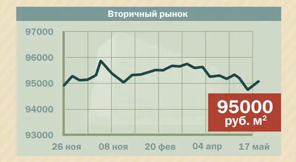 За минувшую неделю изменение средней цены предложения на вторичном рынке квартир в рублевом эквиваленте составило 0,3%, это 324,6 руб. с одного квадратного метра. Показатель средней цены предложения за неделю с 08 по 17 мая 2013 года составил 95 тыс. руб. за кв. м. Цена предложения в долларах составила 3 тыс. за кв. м, в евро – 2,4 тыс.