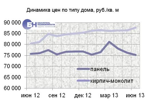 Самыми дешевыми вариантами по стоимости квадратного метра остаются трехкомнатные квартиры в домах панельной постройки. На конец июня 2013 года средняя цена предложения составила 70,8 тыс. руб. за кв. м жилья.