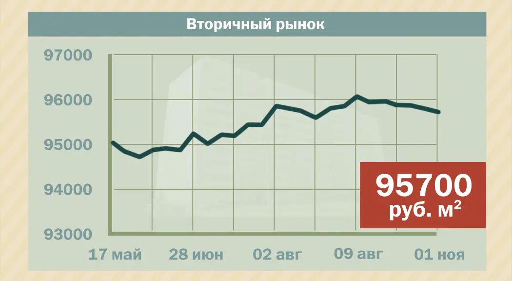 За минувшую неделю изменение средней цены предложения на вторичном рынке квартир в рублевом эквиваленте составило минус 0,1%, это 81,9 руб. с кв. м. Показатель средней цены предложения за неделю с 25 октября по 01 ноября 2013 года составил 95,7 тыс. руб. за кв. м. Цена предложения в долларах – 3 тыс. за кв. м, в евро – 2,2 тыс.