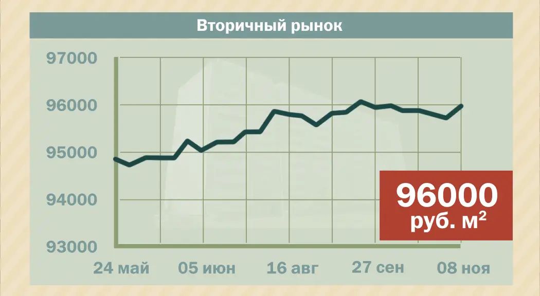 За минувшую неделю изменение средней цены предложения на вторичном рынке квартир в рублевом эквиваленте составило 0,2%, это 234,4 руб. с кв. м. Показатель средней цены предложения за неделю с 01 ноября по 08 ноября 2013 года составил 96 тыс. руб. за кв. м. Цена предложения в долларах – 3 тыс. за кв. м, в евро – 2,2 тыс.